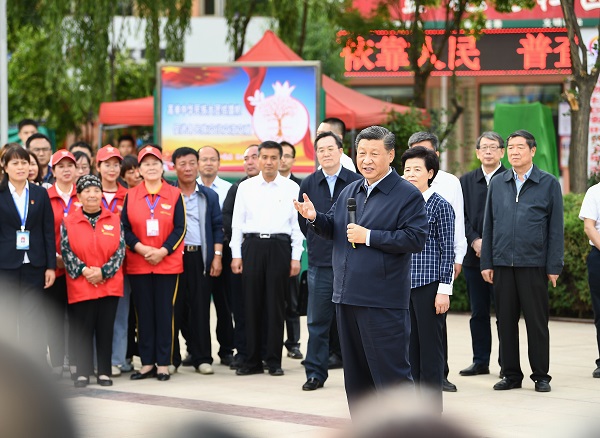 習(xí)近平總書記8日赴寧夏考察調(diào)研。當天下午,他先后來到吳忠市紅寺堡鎮(zhèn)弘德村、黃河吳忠市城區(qū)段、金星鎮(zhèn)金花園社區(qū),了解當?shù)赝七M脫貧攻堅、加強黃河流域生態(tài)保護、促進民族團結(jié)等情況。(攝影:新華社記者 鞠鵬 謝環(huán)馳 王曄 燕雁)