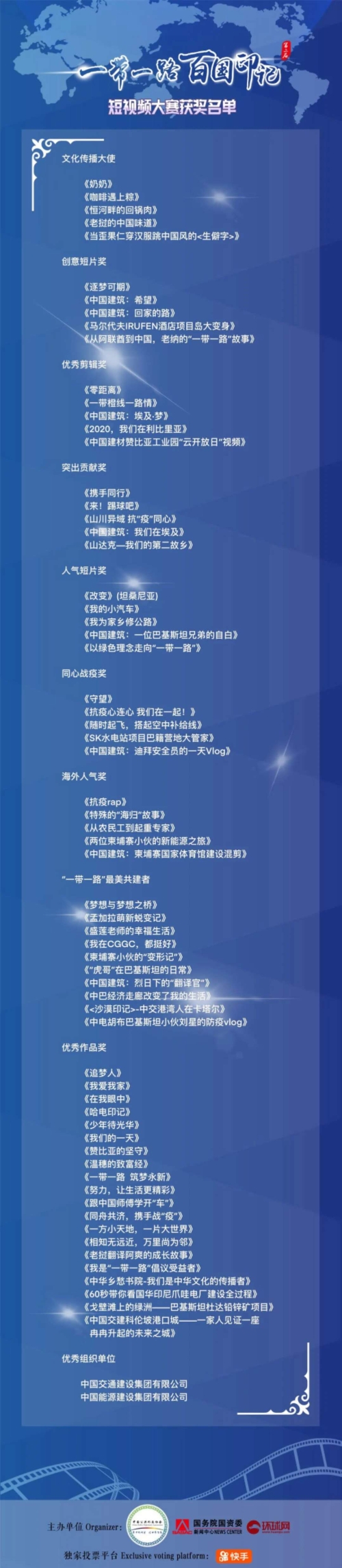 近日,由中國公共外交協(xié)會、國務(wù)院國資委新聞中心和環(huán)球網(wǎng)聯(lián)合主辦的第二屆“一帶一路”百國印記短視頻大賽獲獎名單揭曉,中國兵器工業(yè)集團(tuán)北方公司兩部作品獲獎,其中《一帶橙線一路情》榮獲“優(yōu)秀剪輯獎”,《溫穗的致富經(jīng)》榮獲“優(yōu)秀作品獎”。 《一帶橙線一路情》 《一帶橙線一路情》講述的巴基斯坦拉合爾橙線軌道交通項目是“一帶一路”倡議下中巴經(jīng)濟(jì)走廊首個簽約的基礎(chǔ)設(shè)施項目,也是巴基斯坦第一條城市軌道交通項目。橙線項目建設(shè)和實(shí)施過程中,北方國際廣泛運(yùn)用中國標(biāo)準(zhǔn)、中國技術(shù)、中國裝備,高質(zhì)量的設(shè)計和建設(shè)得到了巴方合作伙伴的高度贊譽(yù),被拉合爾當(dāng)?shù)厥忻裼H切稱為“來自中國兄弟的一份厚禮”。 《溫穗的致富經(jīng)》 《溫穗的致富經(jīng)》聚焦隨著緬甸萊比塘銅礦開發(fā)不斷深入,萬寶礦產(chǎn)推出“社區(qū)社會發(fā)展”計劃并施行了一系列惠民政策,幫助吳溫穗這名普通當(dāng)?shù)卮迕耖_起了擁有7.5萬只蛋雞的現(xiàn)代化養(yǎng)殖場。如今的吳溫穗,儼然成為了率先致富的農(nóng)村企業(yè)家。吳溫穗深信,項目不僅讓村民過上了以往不敢想的好日子,更教會了他們致富之道,項目和村民的未來都會更加美好。 本屆大賽獲得了眾多參與“一帶一路“發(fā)展建設(shè)的大型企事業(yè)單位及個人的響應(yīng),共征集了來自近80個國家的500余部參賽作品。經(jīng)過公眾投票與專家評審的兩輪角逐,本屆大賽最終評選出文化傳播大使獎、創(chuàng)意短片獎、優(yōu)秀剪輯獎、突出貢獻(xiàn)獎、人氣短片獎、同心戰(zhàn)疫獎、海外人氣獎各5名,“一帶一路”最美共建者 10名,優(yōu)秀組織單位 2個,優(yōu)秀作品獎20名。