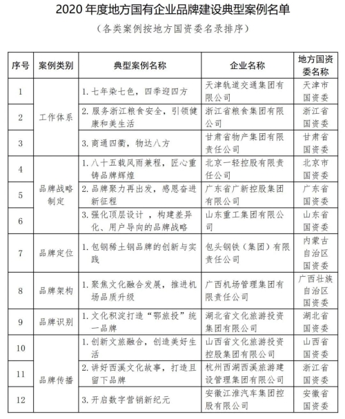 5月10日,由國家發(fā)展改革委等7部門和上海市政府共同主辦,國務(wù)院國資委特別支持的2021年中國品牌日活動在上海舉辦。 活動現(xiàn)場,國資委指導(dǎo)舉辦了中國企業(yè)品牌建設(shè)分論壇,會上發(fā)布了《2020年度中央企業(yè)品牌建設(shè)發(fā)展報告》、2020年度100個國有企業(yè)品牌建設(shè)典型案例和100個優(yōu)秀品牌故事。中國兵器工業(yè)集團北重集團的“技術(shù)創(chuàng)新和商業(yè)模式創(chuàng)新并驅(qū),打造知名民族礦用車品牌”入選2020年度100個國有企業(yè)品牌建設(shè)典型案例,中國兵器工業(yè)集團北方公司的微電影《大山里升起的希望》入選2020年度100個優(yōu)秀品牌故事。 《2020年度中央企業(yè)品牌建設(shè)發(fā)展報告》分析了當前中央企業(yè)加強品牌建設(shè)的形勢要求,從戰(zhàn)略引領(lǐng)、專業(yè)運營、支撐保障、組織管控、全球推廣5個方面總結(jié)了中央企業(yè)年度品牌建設(shè)進展。 2020年度100個國有企業(yè)品牌建設(shè)典型案例和100個優(yōu)秀品牌故事,匯集企業(yè)優(yōu)秀經(jīng)驗做法,豐富國企品牌資源池,促進企業(yè)相互學(xué)習(xí)借鑒,加快提高品牌管理專業(yè)化水平。 2020年度100個國有企業(yè) 品牌建設(shè)典型案例 來源/國資小新 |