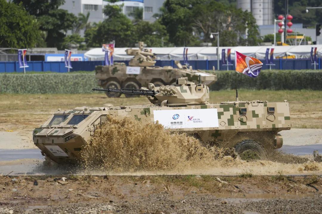 地面裝備動(dòng)態(tài)表演環(huán)節(jié),場(chǎng)地進(jìn)一步增大,由兵器工業(yè)集團(tuán)自主研發(fā)制造的主戰(zhàn)坦克、輪式裝甲車、履帶式步兵戰(zhàn)車、防雷車、輪式防護(hù)型步兵輸送車、運(yùn)輸車等將現(xiàn)場(chǎng)表演爬縱坡、過(guò)壕溝、涉水池、蛇形機(jī)動(dòng)等項(xiàng)目,展示高度的機(jī)動(dòng)靈活性和強(qiáng)大的越野能力,為廣大觀眾帶來(lái)耳目一新的視覺(jué)盛宴。
