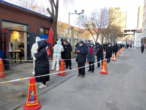 當(dāng)前,內(nèi)蒙古自治區(qū)疫情防控形勢依然嚴(yán)峻,包頭市中風(fēng)險地區(qū)已達(dá)7個。面對疫情,中國兵器工業(yè)集團(tuán)有限公司駐包頭單位積極行動,支援當(dāng)?shù)匾咔榉揽?,共筑安全防線。 凌晨集結(jié),投身核酸檢測工作 來自一機(jī)集團(tuán)、北重集團(tuán)、材料院52所包頭事業(yè)部的共計500余名志愿者密切配合包頭市防疫部門、街道社區(qū)進(jìn)行全員核酸檢測,同時做好信息登記、維護(hù)秩序、宣傳政策等工作,確保核酸檢測全覆蓋。2月20日凌晨,在零下20度的寒風(fēng)中,志愿者全部在支援地集結(jié)到位,做好核酸檢測前的相關(guān)準(zhǔn)備。 一機(jī)集團(tuán)黨員突擊隊 志愿者們搭建臨時帳篷,用圍擋封控家屬區(qū),配合醫(yī)護(hù)人員組織居民排隊,有序進(jìn)行核酸檢測。檢測工作開始后,志愿者們用溫暖的話語安撫居民們的情緒,引導(dǎo)居民有序入場,檢測居民體溫,登記核對信息,轉(zhuǎn)運(yùn)檢測樣本。為了盡可能提高檢測工作效率,志愿者在各條核酸檢測通道指導(dǎo)群眾掃碼登記,一對一幫助老人、兒童等不便使用智能手機(jī)的群眾解決困難,使其能順利進(jìn)行核酸檢測。 逐戶上門,確保應(yīng)檢盡檢 為確保所支援地區(qū)完成全員核酸檢測工作,志愿者自愿組隊,挨家挨戶上門通知,進(jìn)行人員核對,對于處在隔離期的居民以及行動不便的老人、兒童采取了入戶核酸檢測。