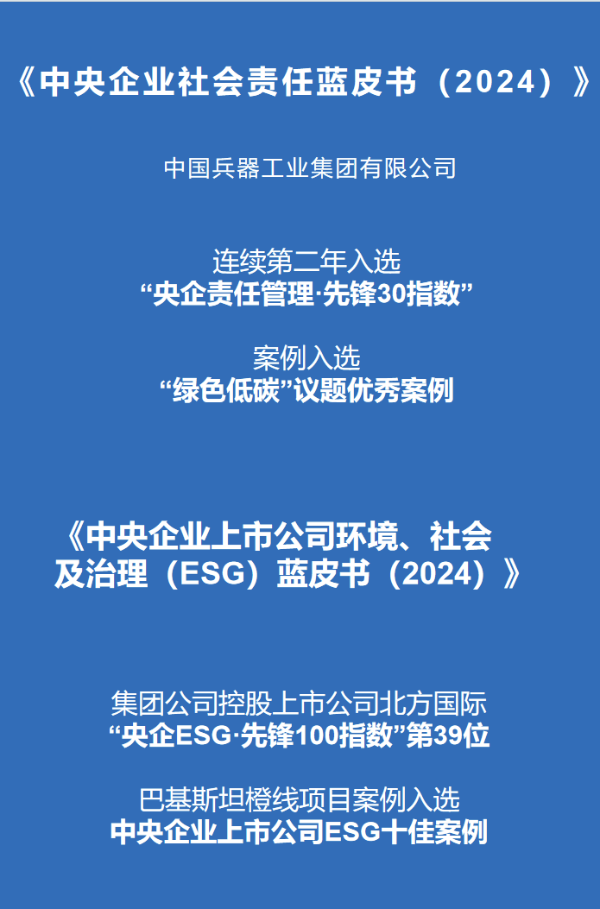 11月7日至8日,由國務(wù)院國資委主辦的“第七屆中國企業(yè)論壇之國有企業(yè)社會責(zé)任平行論壇”和2024中國企業(yè)新媒體年會在京舉行。 國有企業(yè)社會責(zé)任平行論壇現(xiàn)場發(fā)布了《中央企業(yè)社會責(zé)任藍皮書(2024)》《中央企業(yè)海外環(huán)境、社會及治理(ESG)藍皮書(2024)》《中央企業(yè)上市公司環(huán)境、社會及治理(ESG)藍皮書(2024)》等系列成果。其中,集團公司連續(xù)第二年入選“央企責(zé)任管理·先鋒30指數(shù)”榜單,集團公司案例入選“綠色低碳”議題優(yōu)秀案例,所屬控股上市公司北方國際入選“央企ESG·先鋒100指數(shù)”第39位,巴基斯坦橙線項目案例入選中央企業(yè)上市公司ESG十佳案例。