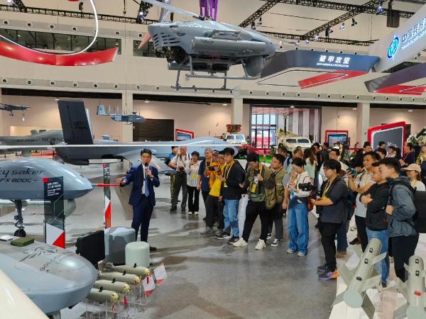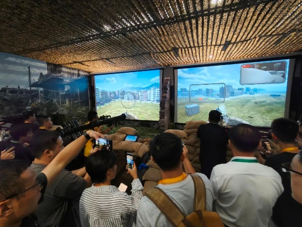 本屆航展,兵器工業(yè)集團(tuán)著重展示數(shù)智賦能軍貿(mào)合成旅作戰(zhàn)體系?!疤金^”現(xiàn)場,新聞發(fā)言人向記者團(tuán)介紹了本屆航展集團(tuán)公司參展亮點(diǎn)、明星產(chǎn)品和技術(shù)發(fā)展成果,并對VT5-U輕型坦克、VU-T10無人平臺(tái)、SR5多管火箭炮、金雕CR500B無人直升機(jī)系統(tǒng)、指揮控制中心等參展裝備和技術(shù)作了重點(diǎn)介紹,媒體記者進(jìn)一步了解了裝備的性能和特點(diǎn)。在無人火力展區(qū),記者團(tuán)還走進(jìn)仿真訓(xùn)練體驗(yàn)區(qū),親身“使用”單兵武器,體驗(yàn)裝備性能。